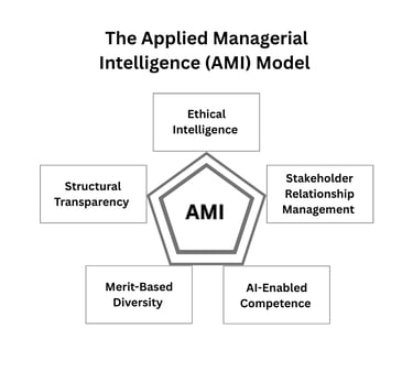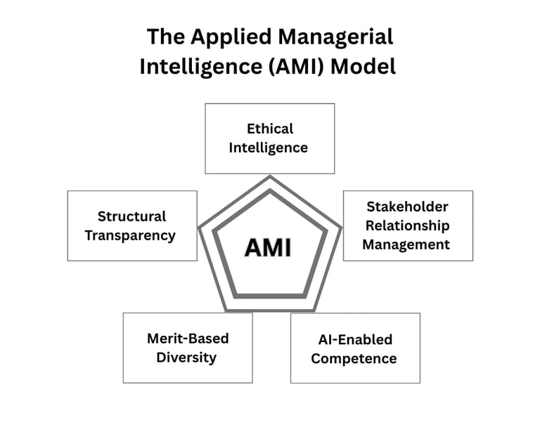 The Applied Managerial Intelligence (AMI) Framework provides a practical model for organizations to align ethical leadership, data-driven competence, and stakeholder accountability into a single coherent system.